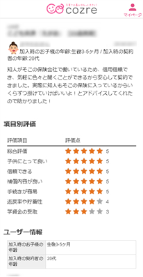 cozre会員の皆様に使用経験のある学資保険の感想・評価を投稿いただき、独自のおすすめランキングを算出しました。