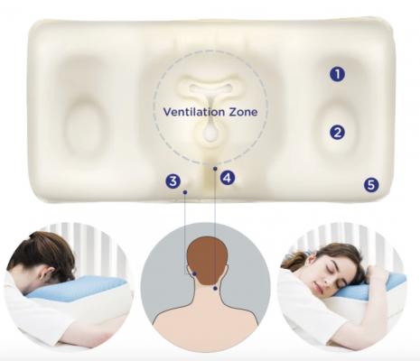 これは人体工学に基づいた3D設計により、頸椎を自然な状態に保ったり、横向き時には少し高さを出すことで肩の痛みを軽減したり、耳部分をくぼませることで圧迫による痛みを軽減したりと様々な効果を持っています。