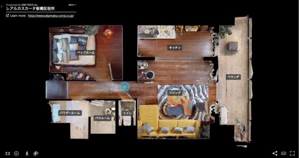 今回より真上からの視点で見たリアルな間取り図を追加いたしました。また、操作ボタンの追加など、UIの改善を実施しています。