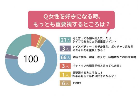 内面重視が66名以上!男はしっかり中身を見ている! 〜女性を好きになる時に最も重要視する事とは!?〜