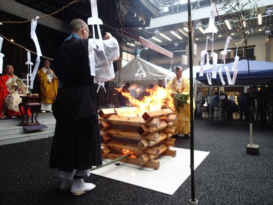 万松寺の本堂前で正月飾り・しめ縄や古い御札・お守りなどをお焚き上げし、無病息災・家内安全などを祈願します。また今回は、「凶返し吉祥護摩」(きょうがえしきっしょうごま)も営みます。元旦から奉納いただいた「凶返し吉祥護摩木」をお焚き上げすることで、凶厄を払い落とすことができます。