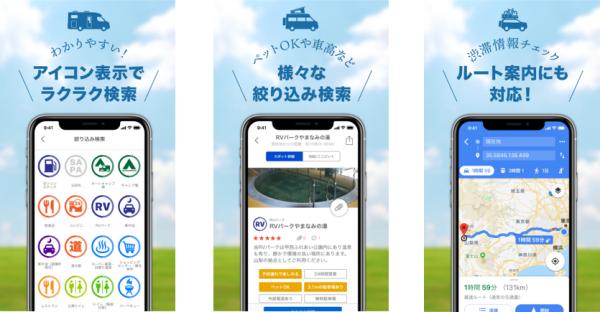 ダウンロードページ(Android):https://play.google.com/store/apps/details?id=jp.japancrc.odekake.campingcar