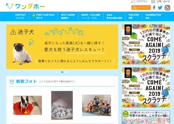 「ワンダホー」は、災害時や緊急時に役立つ大切な愛犬を探せる「迷子犬掲示板機能」や愛犬をみんなに自慢できるリアルタイムの「フォトコンテスト機能」、愛犬と行ける「宿泊施設紹介」など、様々なコンテンツを展開している、愛犬と飼い主のためのポータルサイトです。