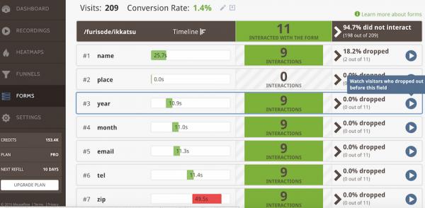 フォームの要素ごとに、ユーザーの離脱の原因になっているかどうかを確認できます。