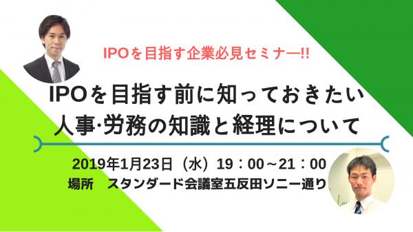 【IPOを目指す企業向けセミナー!】「IPOを目指す前に知っておきたい、人事・労務の知識と経理について」のセミナーを1月23日(水)五反田にて開催!<参加費無料>