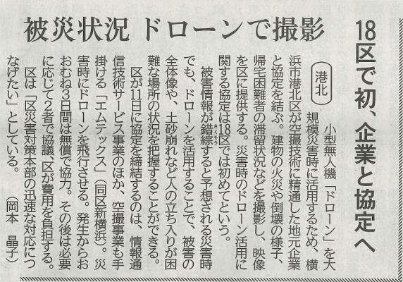 提携先である株式会社エムテックスが港北区と「ドローンの活用に関する協定」を締結しました。