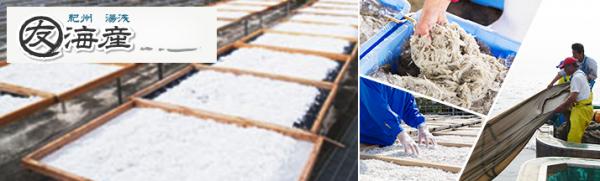 そんな湯浅町で特に評判のしらす製造会社が「まるとも海産」です。「まるとも海産」は、機械干しが一般的になっている中で、無くなりつつあるという伝統の製法「天日干し」の技術を守り続けています。太平洋に面した立地を最大限に活かし、温暖な気候と良質な水に恵まれた湯浅町でしらすの製造業を営んでいます。さらに、しらすはもちろん無着色でかつ調味料にもこだわり、赤穂の塩のみを使用し作っています。