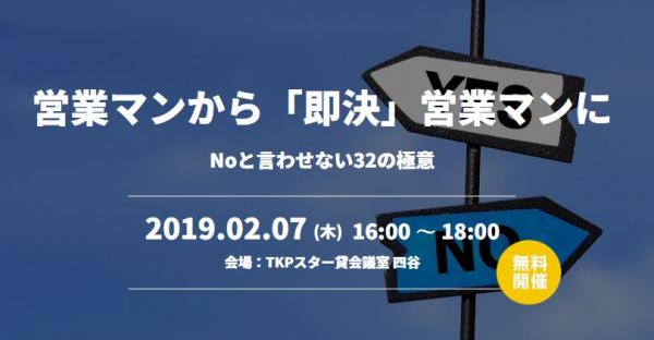 【東京】2/7(木)営業マンから「即決」営業マンに〜Noと言わせない32の極意〜