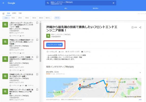 沖縄発のインターネットベンチャーである琉球インタラクティブ株式会社(本社:沖縄県宜野湾市、代表取締役社長:臼井 隆秀、以下「琉球インタラクティブ」)が運営する沖縄最大の求人マッチングサービス「ジョブアンテナ」は、グーグル社が提供する求人情報検索サービス「Googleしごと検索(Google for Jobs)」に連携対応を完了しました。2019年1月24日(木)より、ジョブアンテナを利用いただいている企業様の全ての求人が、Googleしごと検索で表示・検索可能となっています。