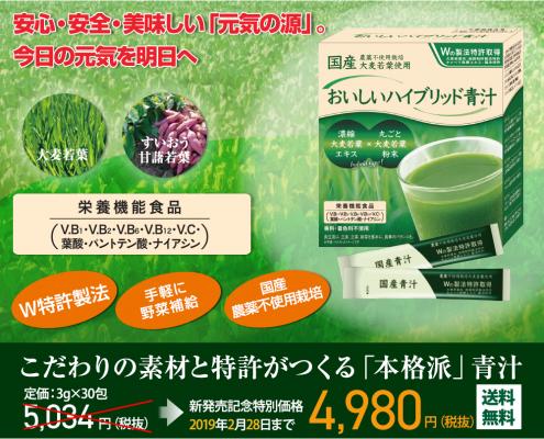 【新発売】ミリオン株式会社からWの製法特許取得商品を発売開始! 国産農薬不使用栽培『おいしいハイブリット青汁』