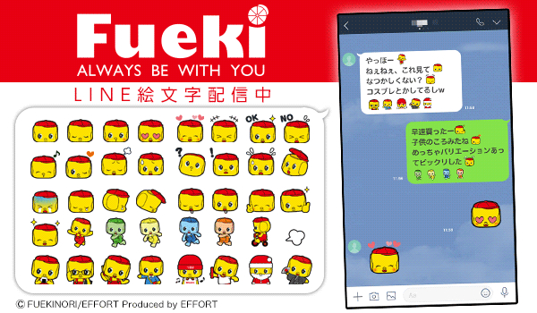 株式会社インクルーズ(東京都渋谷区、代表取締役社長 山崎 健司)は、LINE株式会社(東京都新宿区、代表取締役社長 出澤 剛)が運営するコミュニケーションアプリ「LINE」内にて、「フエキくん」LINE絵文字を2019年1月29日(火)に配信致しました。