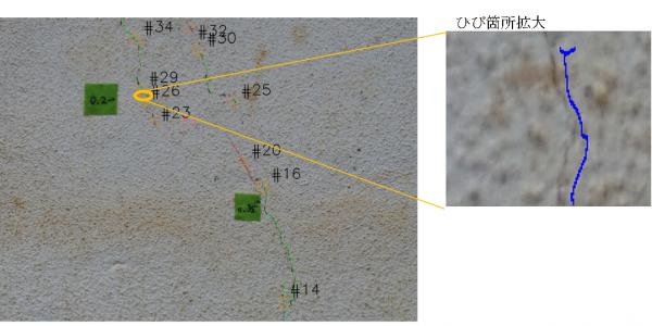 ■実施結果(0.2mm幅相当のひび割れ箇所の検出)