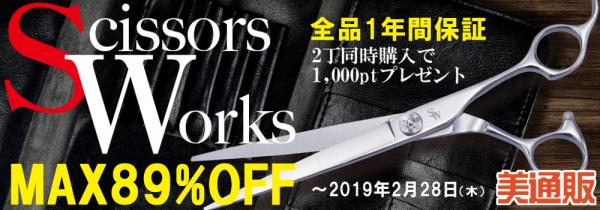 プロ向け美容材料の通信販売サイト「美通販」が、「SCISSORS WORKS/シザースワークス」キャンペーンを開催!最大89%OFF!人気のシザーを特別価格で販売!キャンペーンは2月28日(木)まで