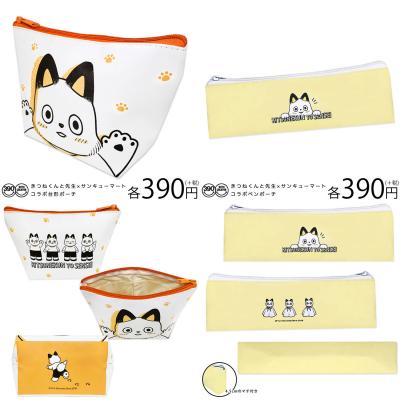ひょこっと飛び出すきつねくんときつねくんのてるてる坊主がデザインされた可愛いペンポーチ♪