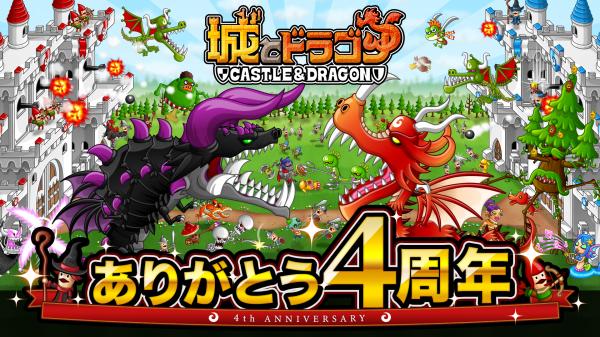 株式会社アソビズム(本社:東京都千代田区、代表取締役:大手智之)は、App Store・Google Playにて好評配信中の『城とドラゴン』で、2019年2月5日(火)のサービス開始4周年を記念した「4周年キャンペーン 前半戦」を1月31日(木)より開催することをお知らせいたします。さらに、最大10,000ルビーが手に入る、「4周年おかえり&新人キャンペーン」も同時開催いたします。その他にも、2019年2月は、4周年を記念したさまざまなイベントを予定しております。久しぶりの方も、いつも遊んでいる方も、ログインして『城とドラゴン』の4周年をお楽しみください!