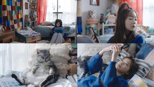 陽だまりで気持ちよさそうに眠る猫につられて、つい危険な方向(ベッドの上)に足を踏み入れる姿には、「あるある!」と多くの人の共感を呼び、そんな日常の風景を切り取ることによって親近感の湧くCMに仕上げています。