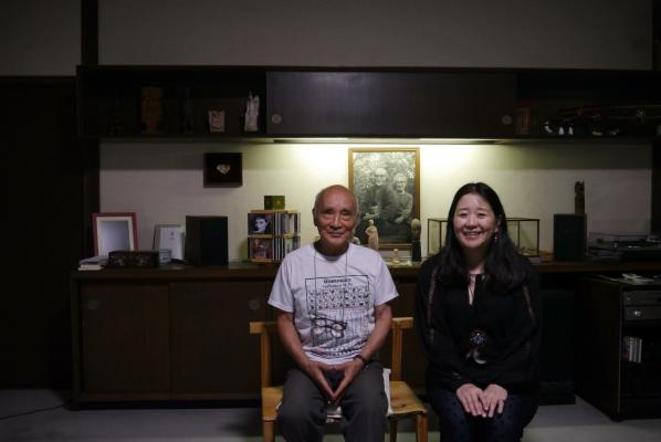 谷川俊太郎さんと、著者の古川奈央さん(俊太郎さんの自宅にて)