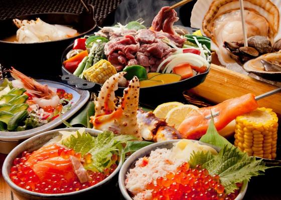 焼き蟹、北海道のソウルフード「ジンギスカン」、2種類から選べる丼が付いたプランです。