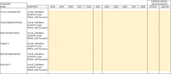 ● Specialty (intra-enclosure, test and measurement, rental units, harsh environment industrial, bio-photonics, sensors, laboratory, manufacturing/production of fiber optic components/devices, other applications, and non-specific uses)