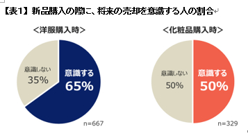 ・「洋服の新品購入の際に、その洋服を将来売却することを意識するか」という問いに対し、全体の65%が意識すると回答。