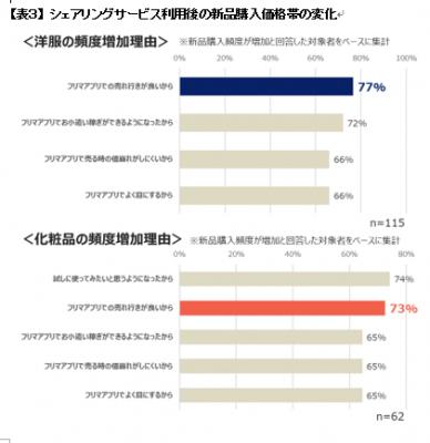 ・洋服の新品購入が増加した理由として、77%が「フリマアプリでの売れ行きが良いから」と回答。