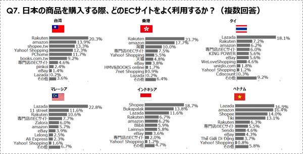 3. 日本の商品を買うなら、台湾・香港ではRakuten、東南アジアではLazada。一方、新興系のECサイトも上位にランクイン!