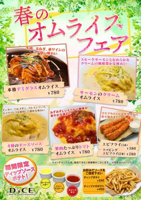 株式会社シティコミュニケーションズ(本社:神奈川県横浜市 代表:三田大明)が運営するインターネットカフェ「DiCE」の食事提供店舗(仙台店、大宮店、赤羽店、自由が丘店、新小岩店)におきまして、3月5日から6月3日の期間限定で『春のオムライスフェア』を実施いたします。