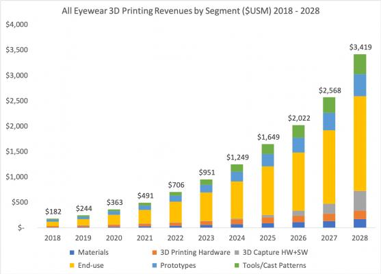 Key AM companies included in this report are Carbon, DWS, EOS, Formlabs, Fuel 3D, Glasses USA; Hoet, Hoya, HP, Luxexcel, Luxottica, Materialise, MONOQOOL, Mykita, Protos, Safilo, Sculpteo, Seiko, Sfered, Sisma, Specsy and several others.
