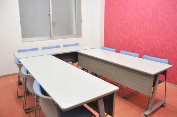 ピンク色の壁紙がアクセントカラーになって、かわいらいくポップな貸し会議室です。
