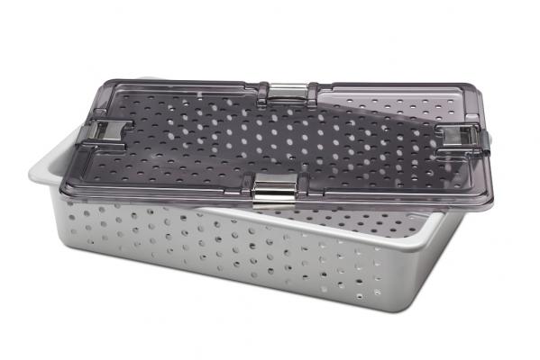 Legacy Medical Solutions社の長さ59.7cm、幅38.1cm、高さ14.2cmのユニークな大型滅菌トレイは、熱成形された透明な蓋と、金属製のクランプシステムで固定される不透明なベーストレイで構成されており、双方ともにレーデル(r) PPSU樹脂が用いられています。蓋が透明なためトレイの内容物が見え、利便性が高まります。ベーストレイは、従来型の製品に使用されているアルマイト製のトレイよりも50%軽量で、ドリル加工された穴が開いているため滅菌時の効率的な排気が可能です。レーデル(r) PPSU樹脂の採用により、トレイの衝撃強さ、柔軟性、耐薬品性も向上しています。重要な点は、この製品が、138度Cで長時間、繰り返し行われるオートクレーブ処理を含むすべての一般的な滅菌法に対応可能なことです。レーデル(r) PPSU樹脂を用いたトレイは、比類なき強靭性を発揮すると共に、優れた美観を維持します。