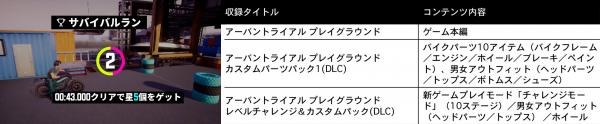 バイクパーツからアウトフィットに至るまで、カスタマイズの選択肢が広がる「カスタムパーツパック1」(無料)と、「レベルチャレンジ&カスタムパック」(480円)をバンドル。「レベルチャレンジ&カスタムパック」は、バイクのヴィジュアルだけでなく、パフォーマンスそのものを向上させる最新ホイールのバリエーションが追加されるほか、ユニークなヘッドパーツも利用可能。また、10ステージから成る新しいゲームモード「チャレンジモード」が追加され、各ステージで課されるチャレンジをクリアするとお得な報酬を手に入れることができます。