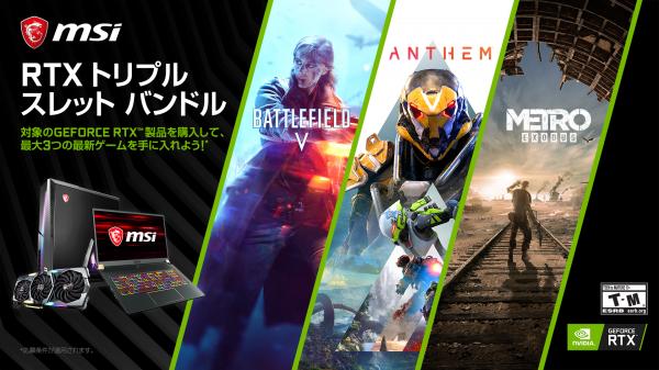 MSI、NVIDIA GeForce RTX 20シリーズのゲームバンドルを強化 -Battlefield V、Anthemに加え、Metro Exodusのゲームコードがもらえるキャンペーンを開始-