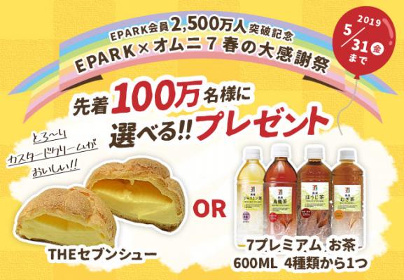 株式会社EPARK(本社:東京都豊島区、代表取締役社長 玉村 剛史、https://epark.co.jp/)は、EPARK会員2,500万人突破(※2019年1月末時点)を記念し、株式会社セブン&アイ・ホールディングスが運営するECサイト「オムニ7」と合同で「EPARK×オムニ7 春の大感謝祭」を開始しました。