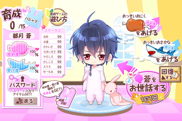 (2)育成アイテムを与え、攻め度・受け度をUPしていきます。