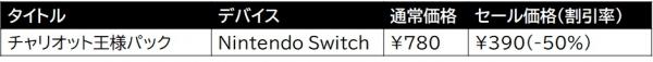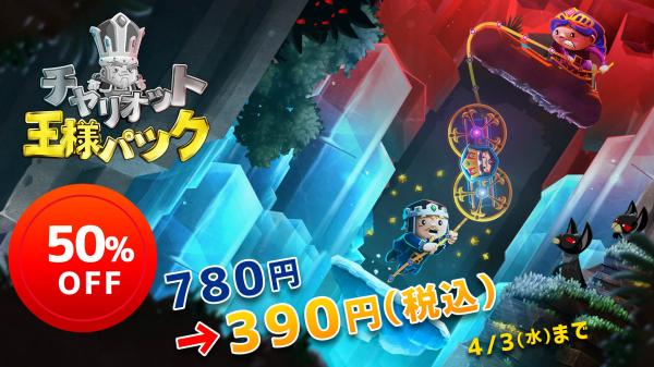 株式会社3goo(サングー)(本社:東京都渋谷区、代表取締役:ディ コスタンゾ ニコラ)は、本日3月28日(木)より4月3日(水)までの期間中、ニンテンドーeショップにて、『チャリオット王様パック』の初セールを開催中です。エイプリルフールをまたいで開催されるこのセールでは、通常価格より50%引きとなるサンキュープライス(390円)で本作をお求めいただけます。