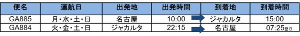 ※ジャカルタ発は2019年3月23日(土)から、名古屋発は2019年3月24日(日)からの運航となります。