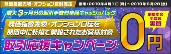 株価指数先物・オプション取引応援キャンペーン ≪日経225先物・オプションなど≫期間中の手数料を全額キャッシュバック!