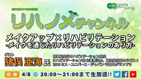 4/8(月)20時より放送 『メイクアップ×リハビリテーション-メイクを通じたリハビリテーションのあり方-』猪俣 亜美 氏(旭神経内科リハビリテーション病院・作業療法士、資生堂化粧セラピスト)出演