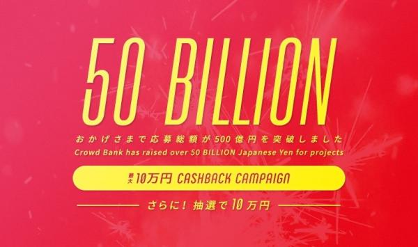 クラウドバンクではお客様のご要望をもとに機能改善などのサービス向上を今年も進めると共に、日頃のお客様への感謝の気持ちを込めて、現在、『累計応募金額500億円突破キャンペーン』を実施しております。この機会に投資をご検討ください。
