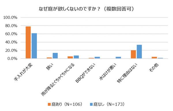 「庭がない」人の『庭は欲しくない』は共に約7割!
