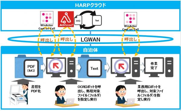 ・具体的には、自治体で大量に扱われている紙からデータに変換する処理をAI-OCR、自動処理をWinActor(R) Cast on Callで行い、自治体業務の変革につなげる取り組みと位置づけました。