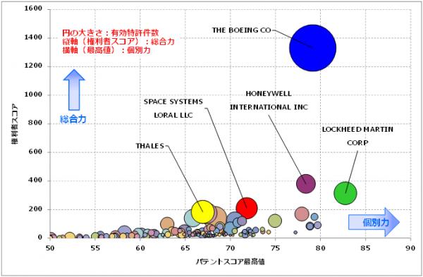 米国における航空宇宙関連技術 特許総合力ランキングトップはBOEING