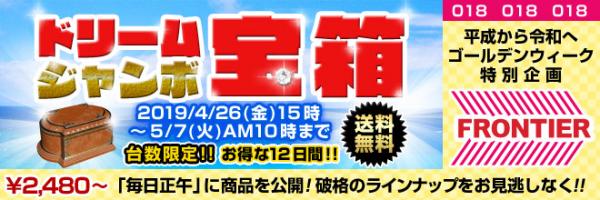 平成から令和へ。FRONTIERでは、時代の節目となる2019年のゴールデンウィークに「ドリームジャンボ宝箱」と称した、12日間限定の特別セールを実施いたします。