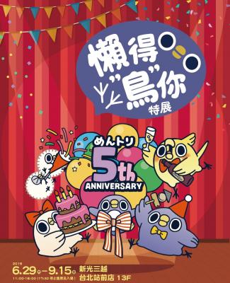 「めんトリ」は日本のみならず台湾でも人気のキャラクターとなっており、今回の展示会は「めんトリ」の5周年を記念した展示会となっております。またトップの5周年イラストは、本展示会に向けた書下ろしのイラスト。「懶得"鳥"你特展」でしか体験することの出来ない「めんトリ」たちの世界にご期待ください。