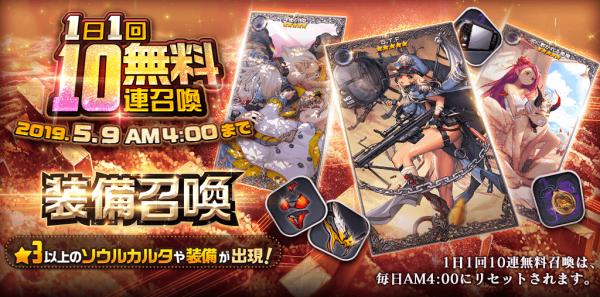 召喚からは、★3以上のソウルカルタや装備が出現します。