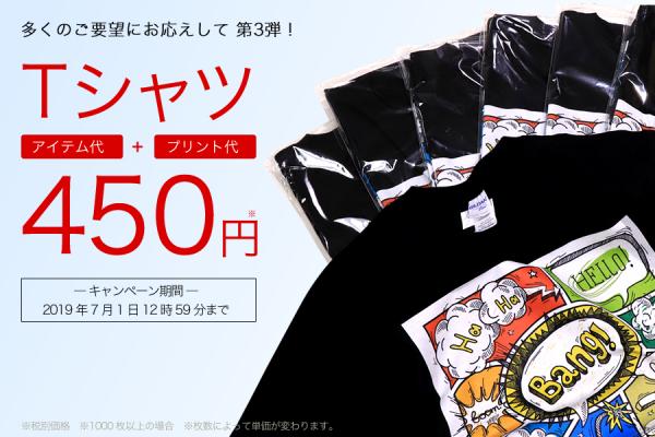 大好評につきキャンペーン第3弾!オリジナルTシャツが1枚税別450円から!