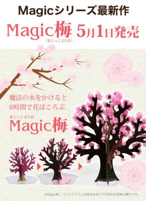 マジックシリーズの代表作ともいえる桜をモチーフにした「Magic桜」に引き続き、日本人に馴染みの深い梅の花を表現したものが「Magic梅」です。新元号が発表され、「令和」の由来である万葉集「梅花の歌三十二首」をもとに付けられた事から、発売を新元号施行の令和元年5月1日に合わせる運びとなりました。今回マジックプラムの発売に合わせて公式サイトをオープンしました。
