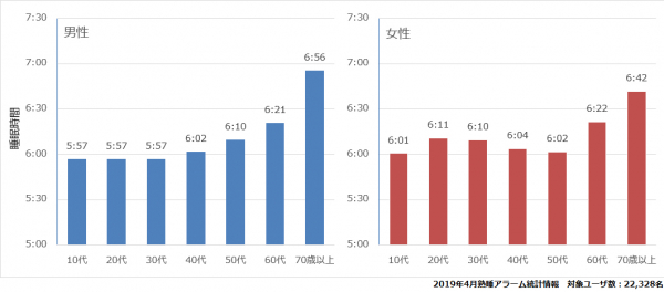 2019年4月度の睡眠統計調査|年代ごとの平均睡眠時間
