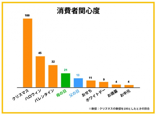 ※グラフ上の数値は、「クリスマス」の数値を100としたときの割合です。