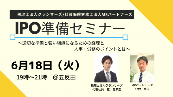 「IPO準備セミナー〜適切な準備と強い組織になるための経理と人事・労務のポイントとは〜」を6月18日(火)五反田にて開催!<参加費無料>
